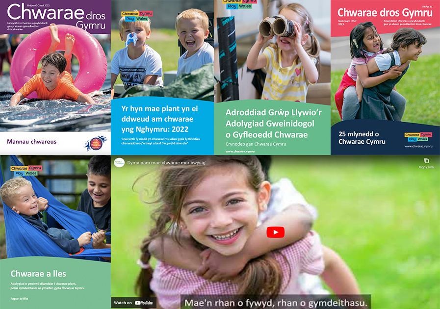 Yn ystod 2023 fe wnaethom gynhyrchu a dosbarthu amrywiaeth o gyhoeddiadau newydd i gefnogi a hysbysu’r rheiny sydd â diddordeb mewn, neu gyfrifoldeb am chwarae plant. Dyma grynodeb o’r cyhoeddiadau – maent i gyd ar gael i’w lawrlwytho am ddim.